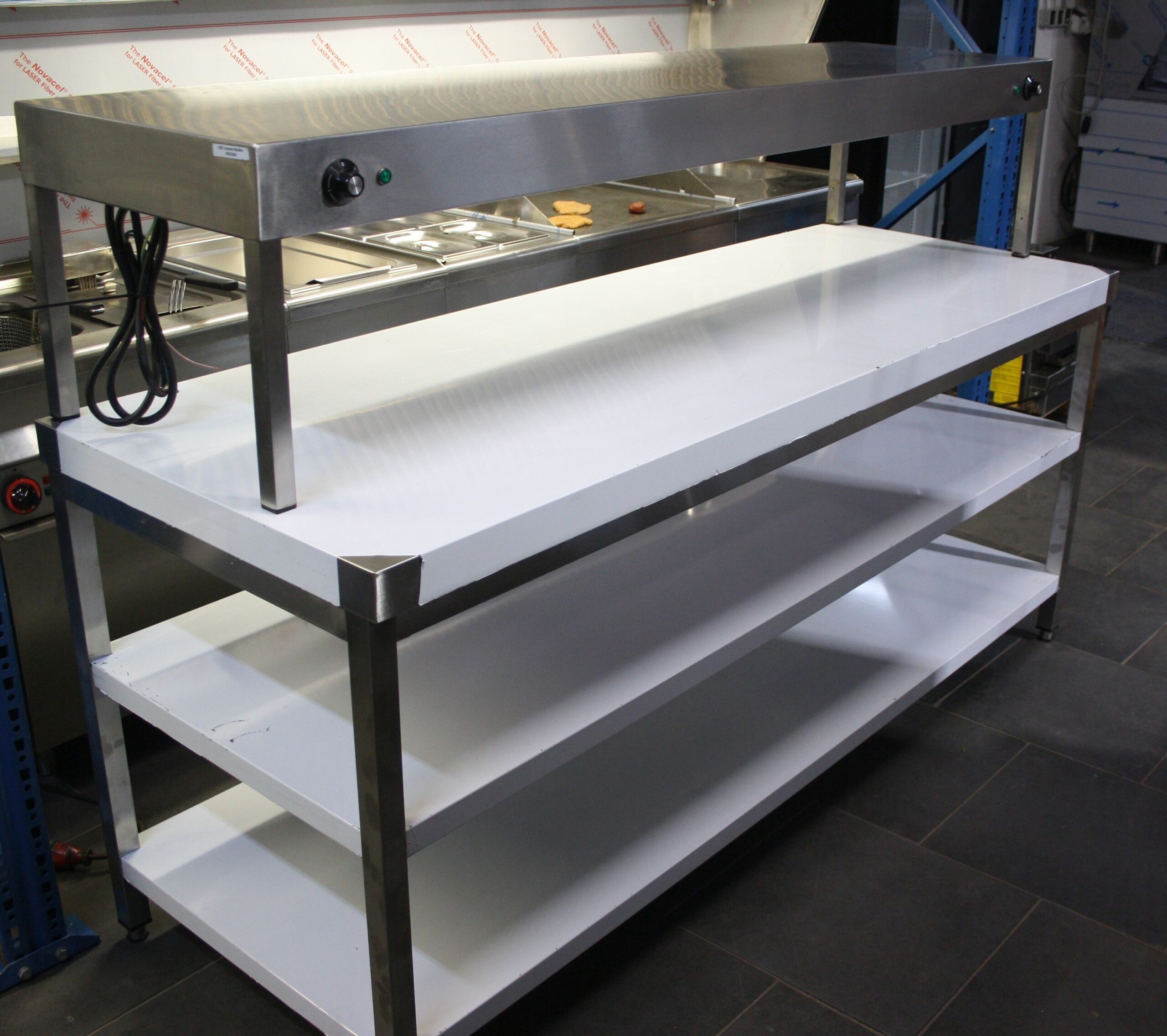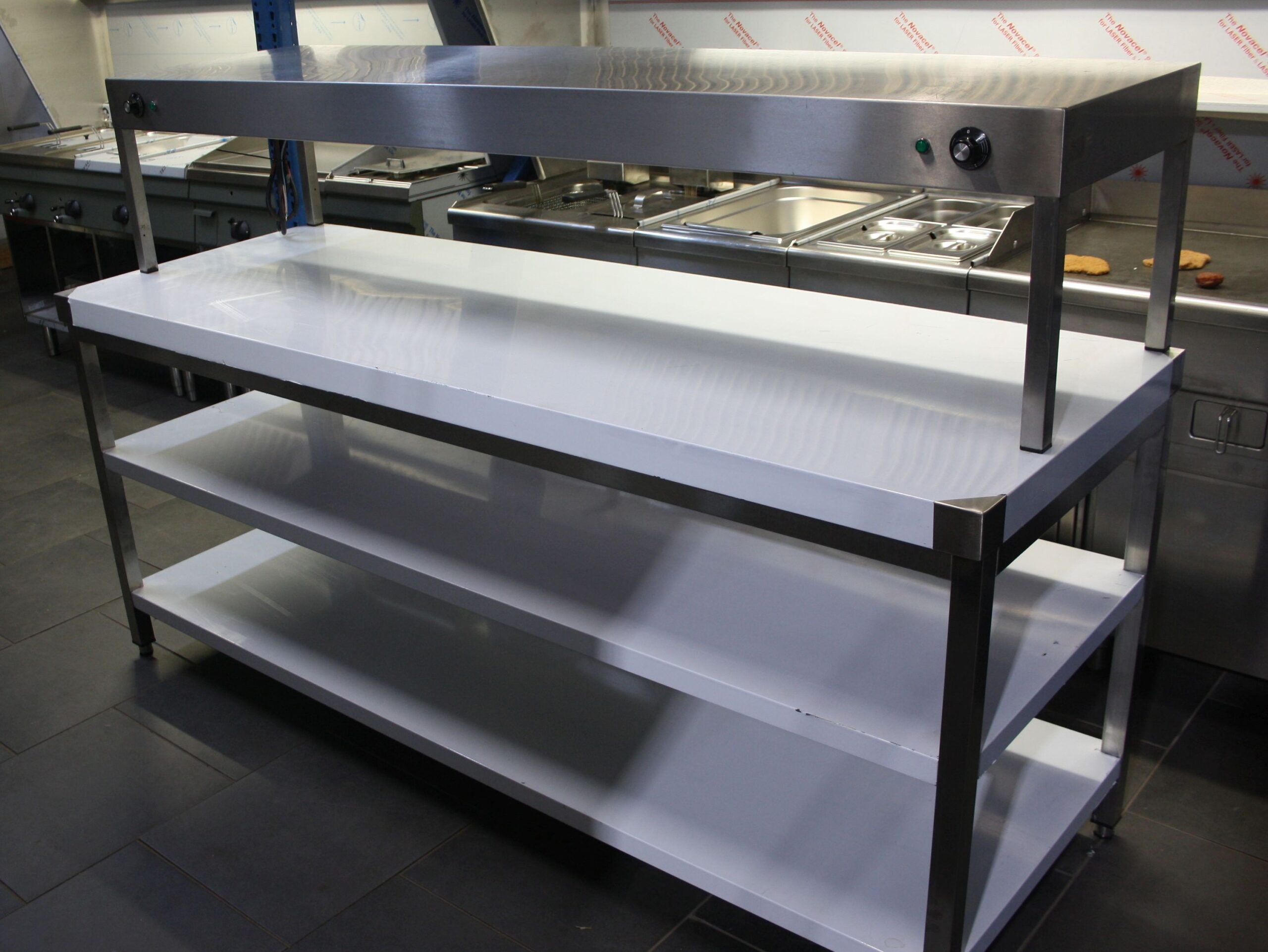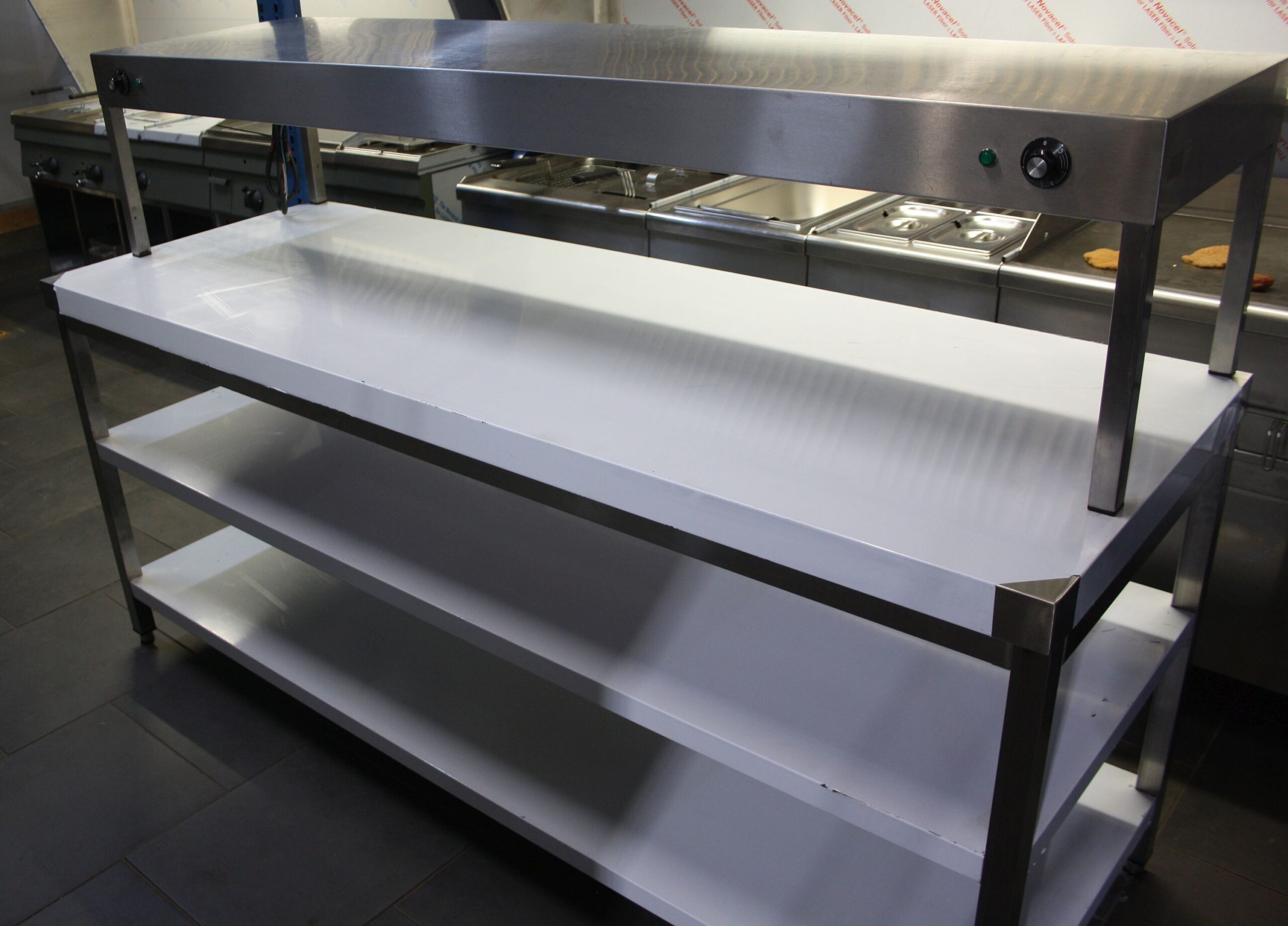 Edelstahltisch Breite: 200 cm, Tiefe: 70 cm, Höhe: 88 cm
