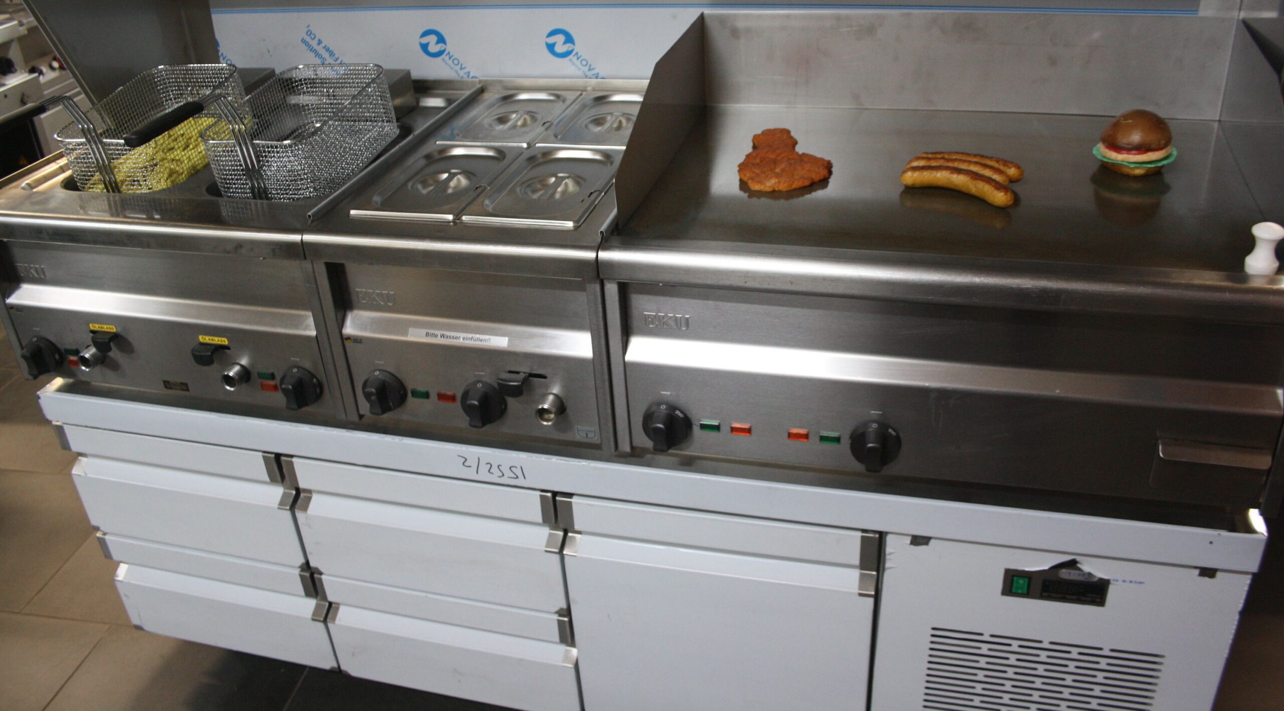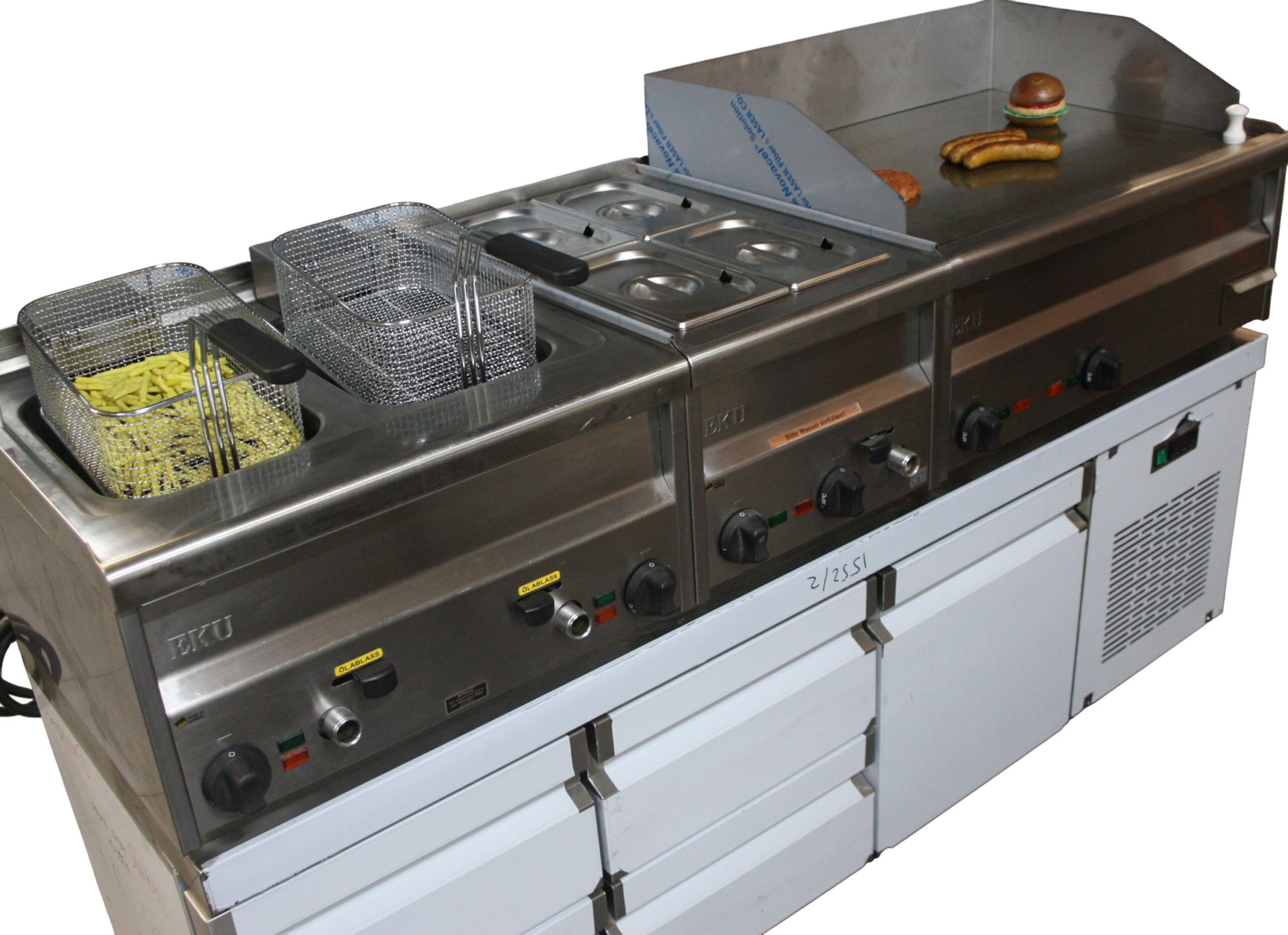 Imbissanlage EKU 180 cm Fritteuse, 80er Bräter, gekühlter Unterbau