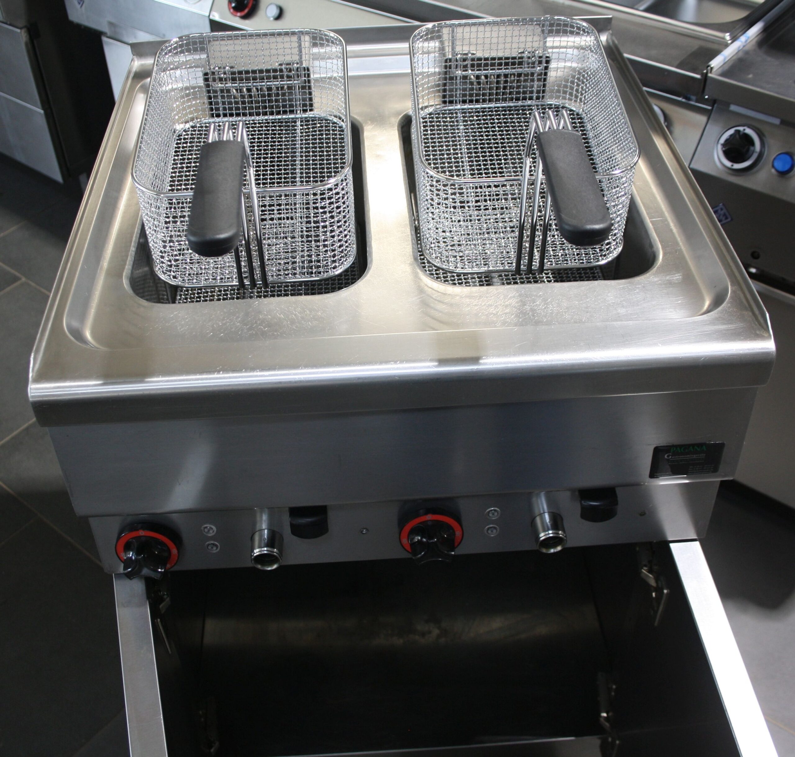 Da wir eine höhere Stückzahl von den Fritteusen haben, können leichte Abweichungen vom Bild möglich sein, z.B. Lampenfarbe oder Knebel.