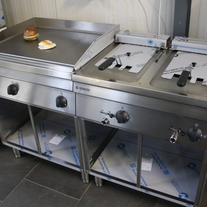 Imbissanlage EKU 180 cm Fritteuse, 80er Bräter, gekühlter Unterbau