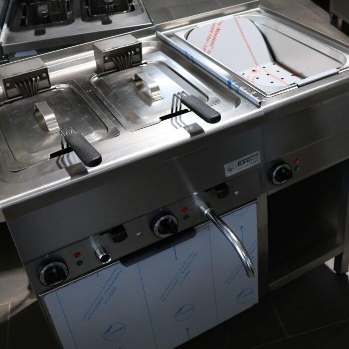 Imbissanlage EKU 180 cm Fritteuse, 40er Bräter, Bain Marie etc. gekühlter Unterbau